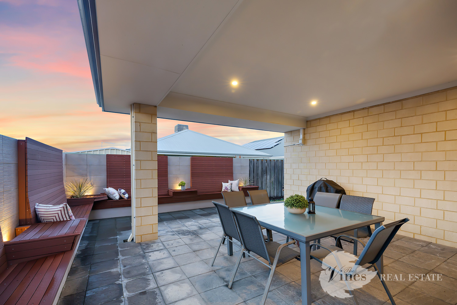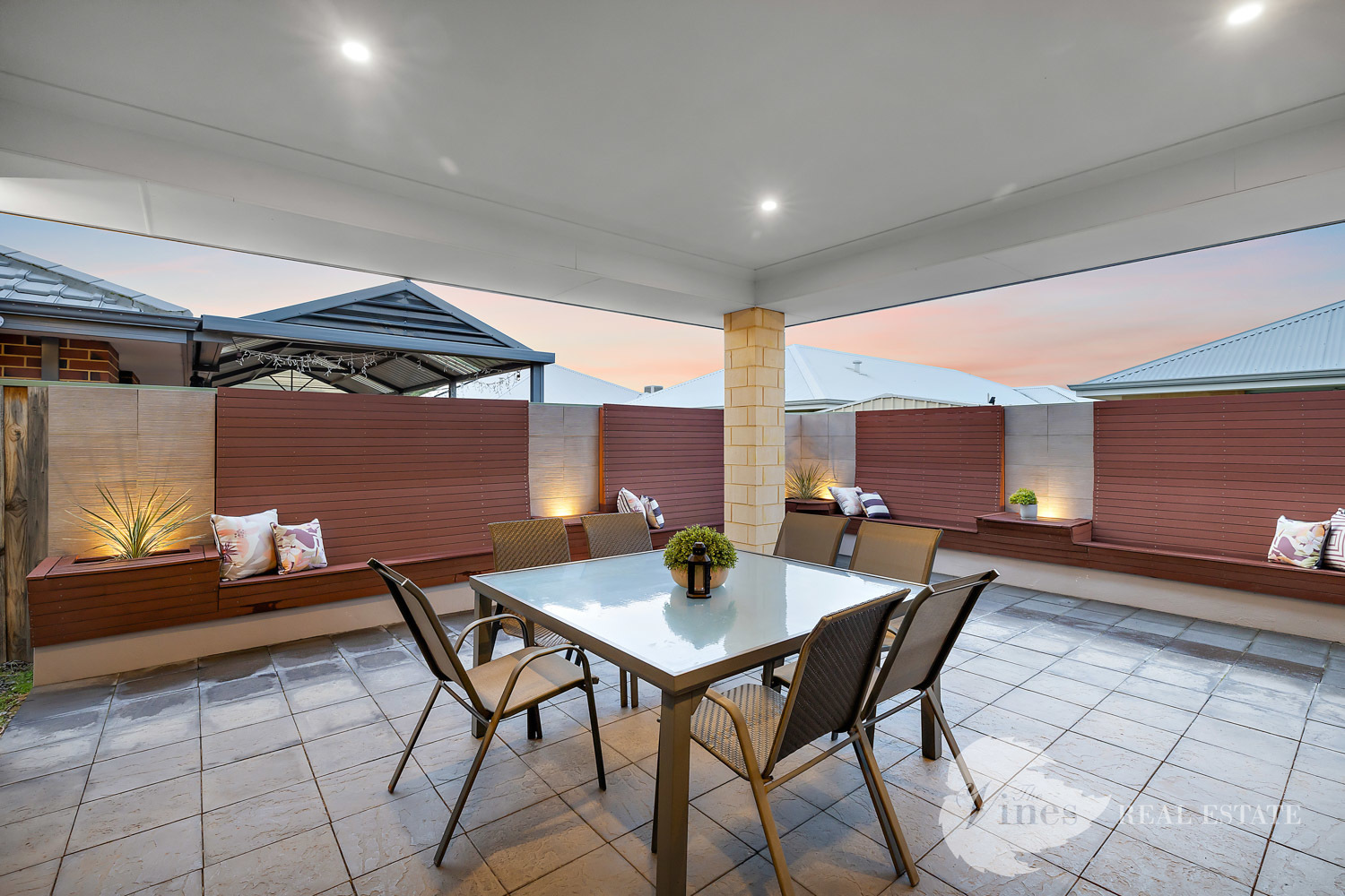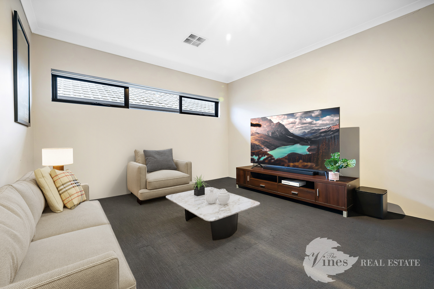 Enjoy cozy nights in the private theatre room behind elegant double doors, or entertain in the expansive open-plan living and dining area that seamlessly connects to a beautiful alfresco. Featuring custom built bench seating and ambient uplighting, this outdoor space is perfect for relaxed gatherings, surrounded by low-maintenance grounds.