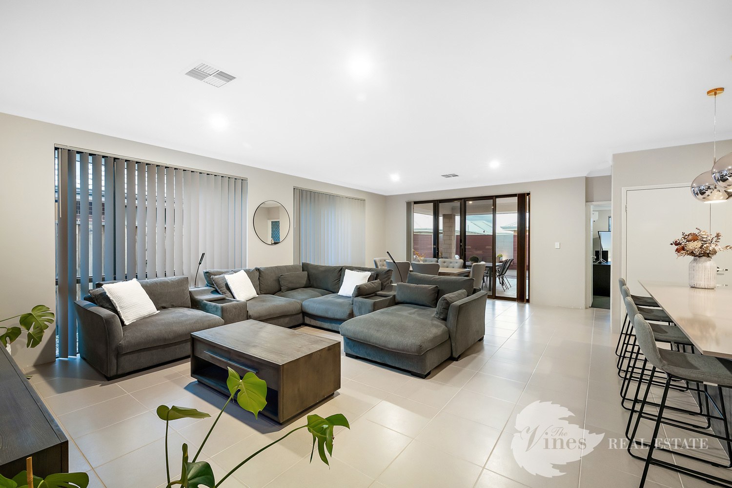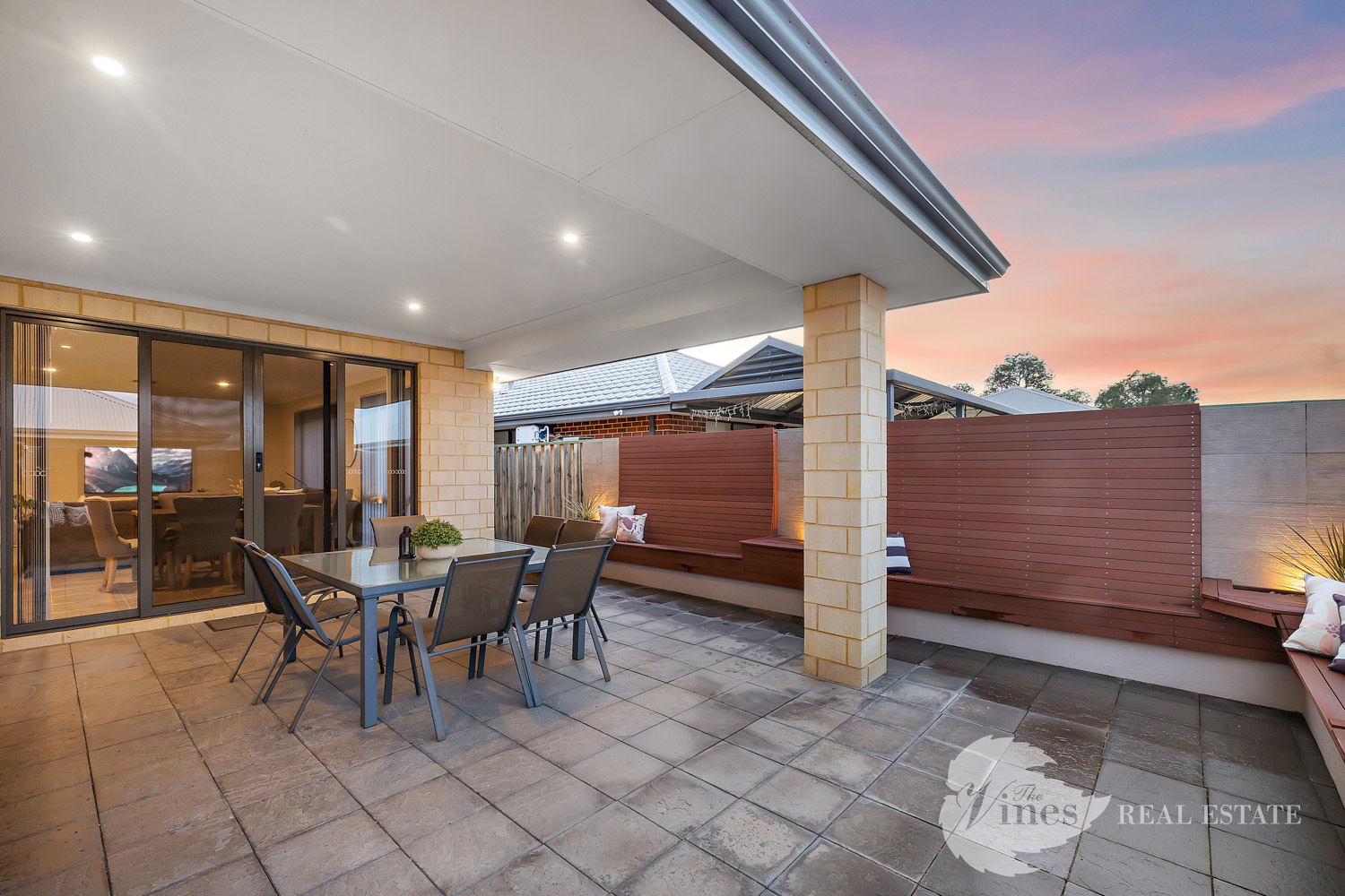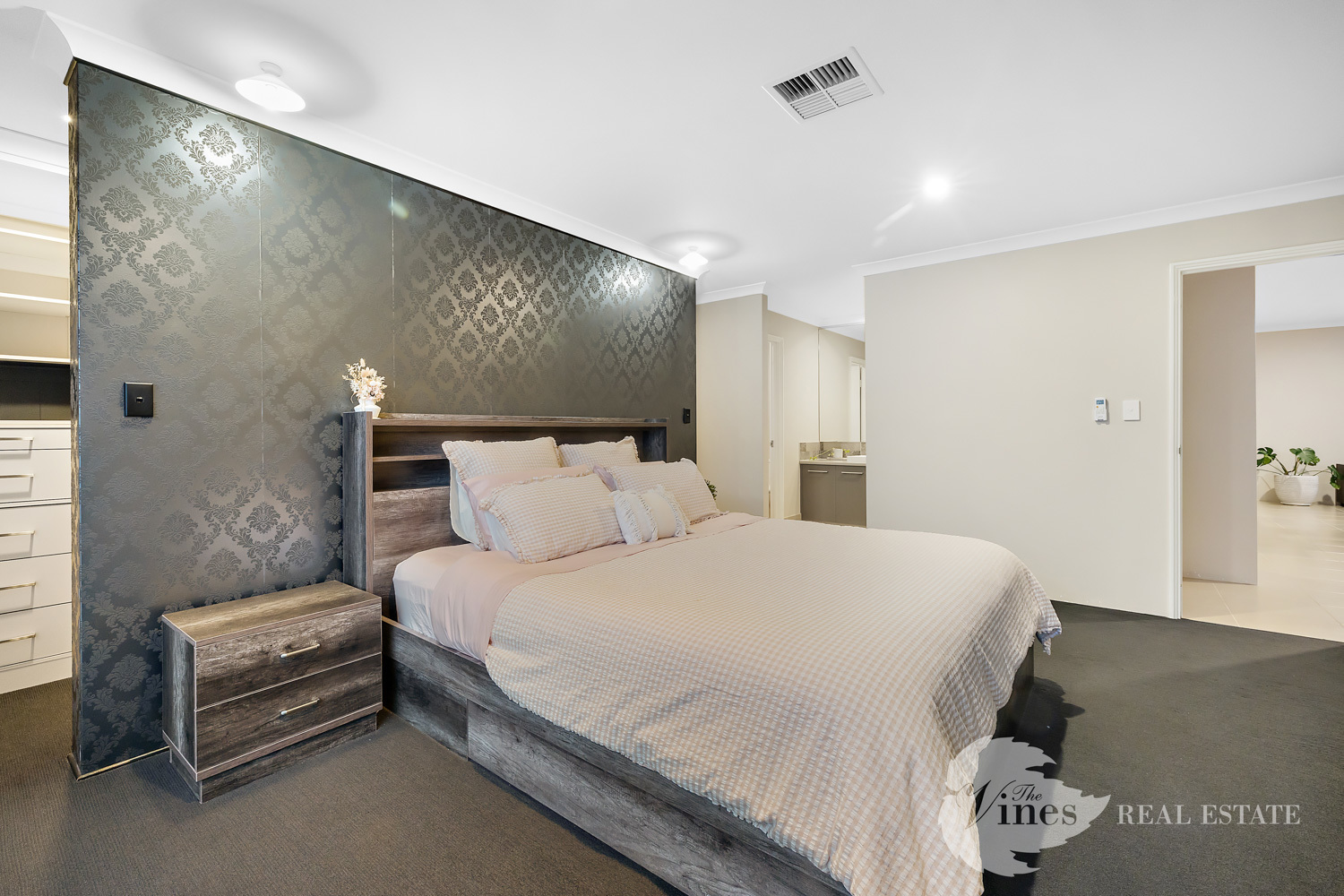 Enjoy cozy nights in the private theatre room behind elegant double doors, or entertain in the expansive open-plan living and dining area that seamlessly connects to a beautiful alfresco. Featuring custom built bench seating and ambient uplighting, this outdoor space is perfect for relaxed gatherings, surrounded by low-maintenance grounds.