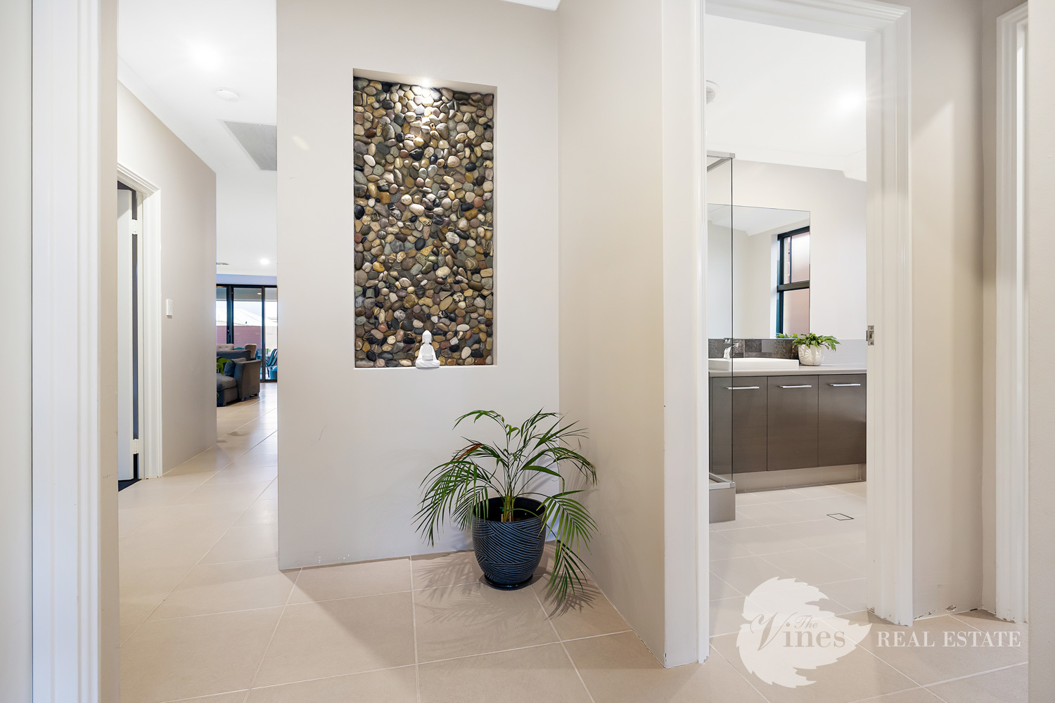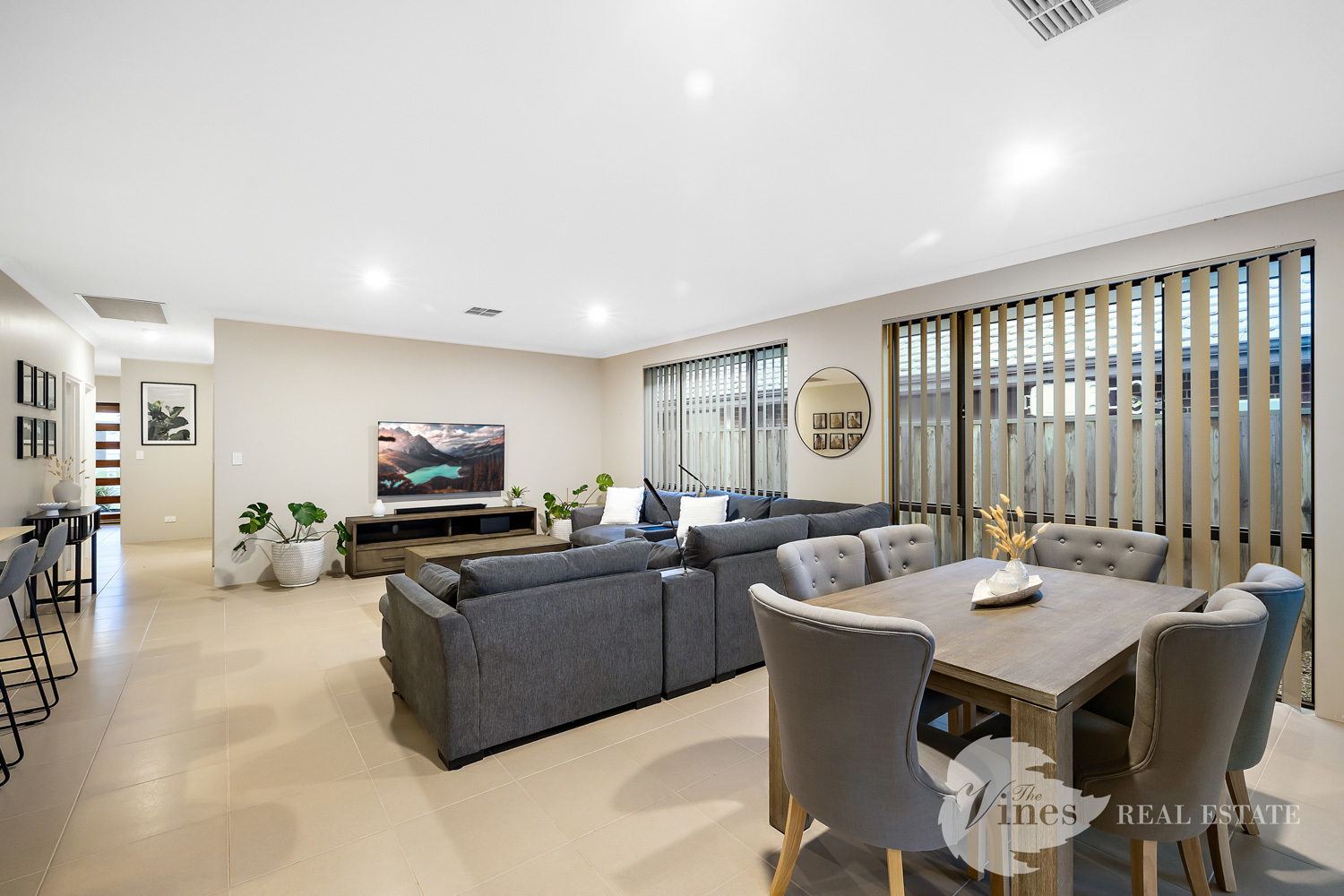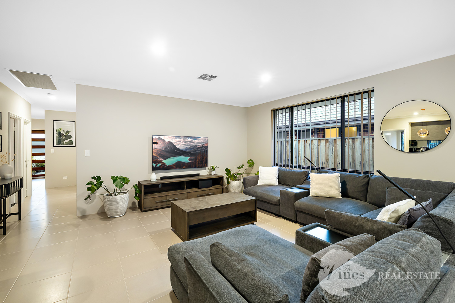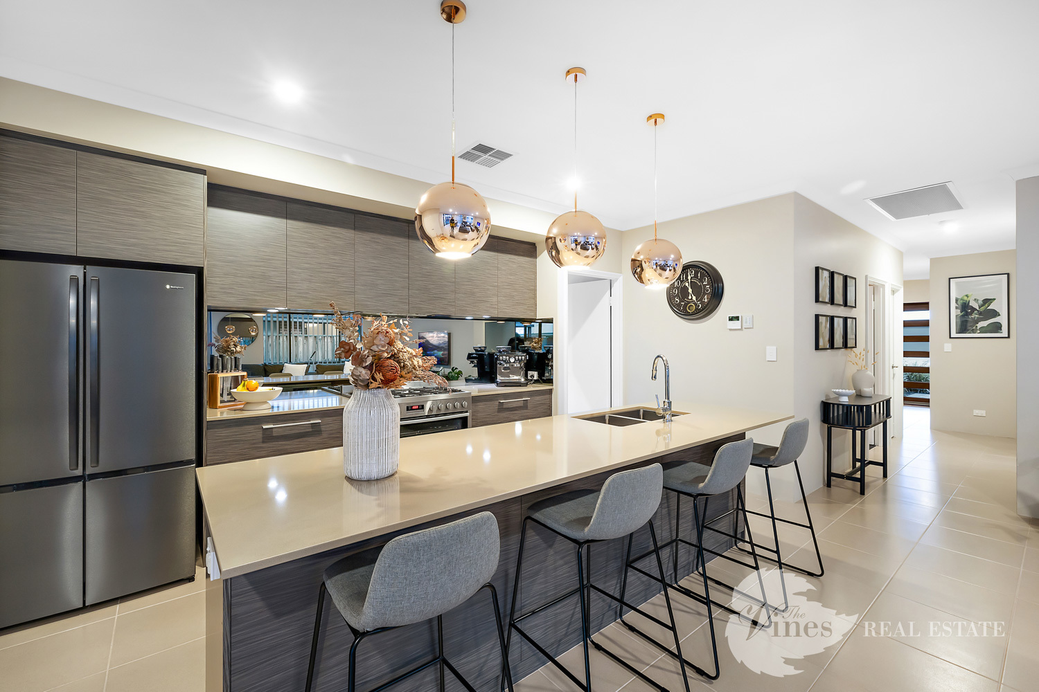 From the moment you arrive, the modern rendered façade and eye catching stone clad feature set the tone for what lies within. Step through the oversized entry door and into a thoughtfully planned interior that blends contemporary style with everyday practicality. A striking stone clad shadow box with integrated lighting greets you, hinting at the quality finishes found throughout. High ceilings, LED downlights, and sleek tiled flooring flow through the home, while reverse cycle air conditioning ensures comfort all year round.