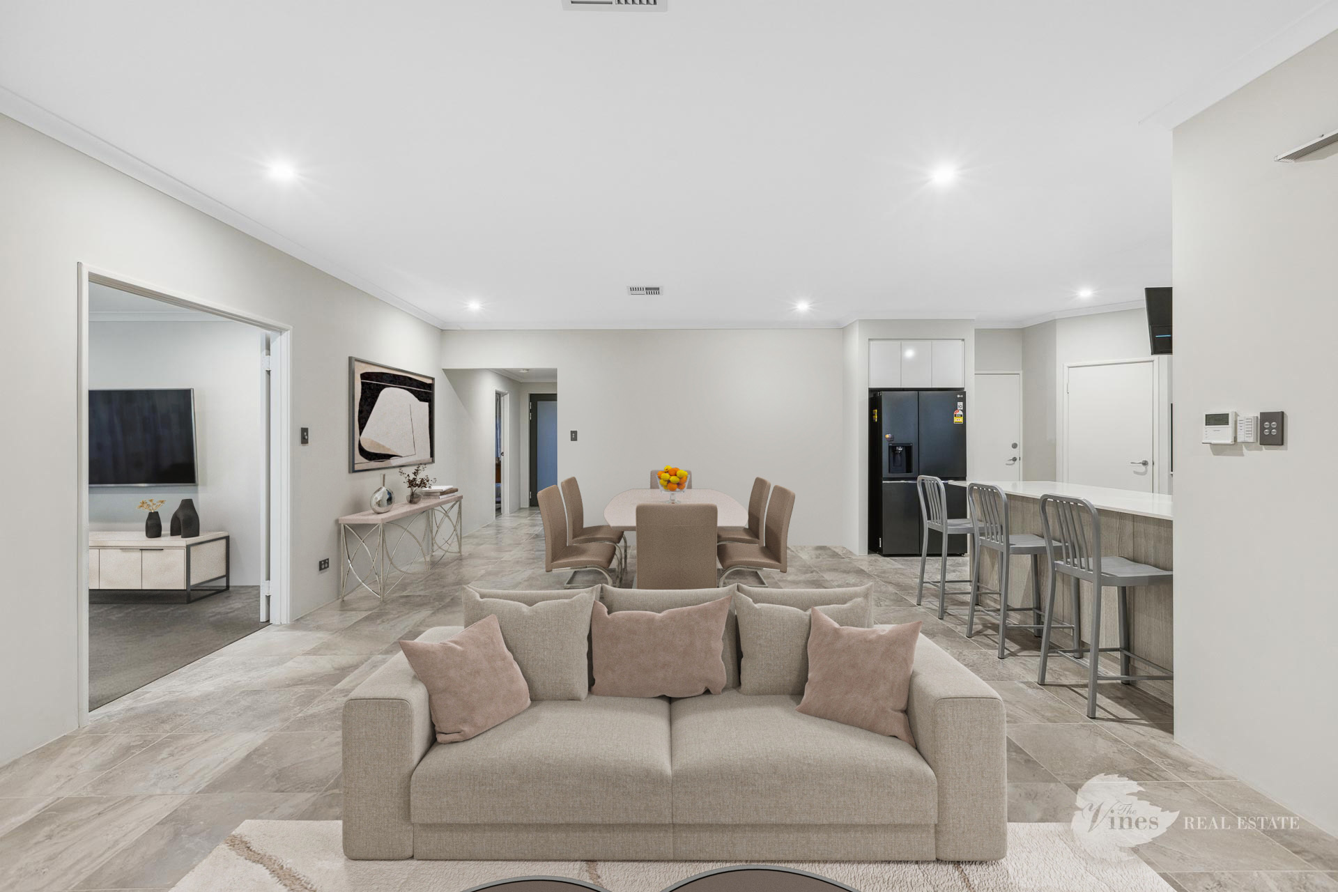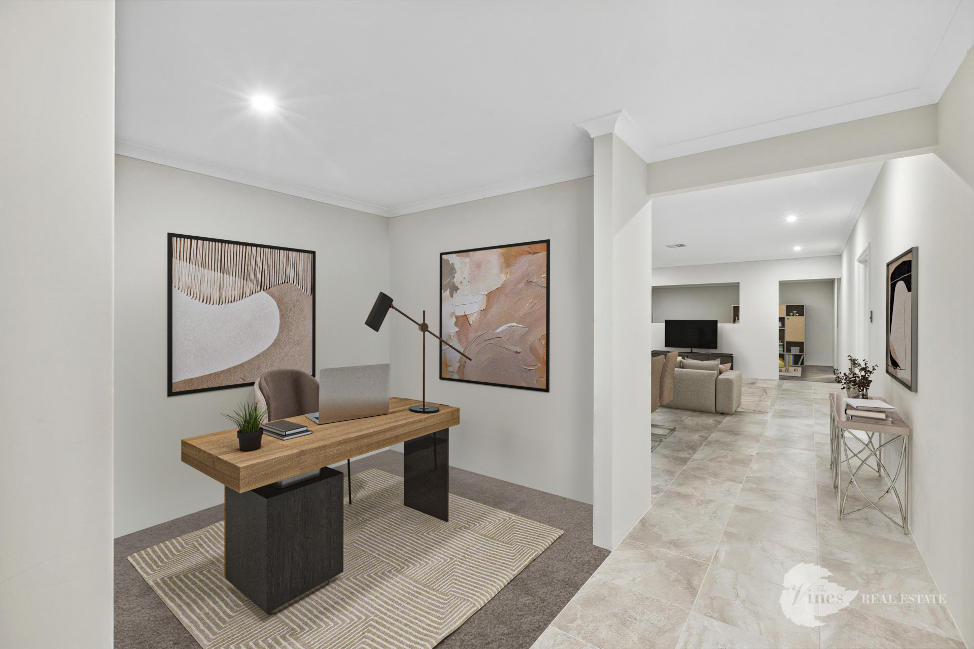 For those who love to entertain or relax in style, the property features a large theatre room with built-in speakers and roller shutters, a second lounge, a dedicated study, and a kids’ activity space. The central dining area is perfect for gathering with family and friends, while outside, the low maintenance yard offers fully reticulated limestone garden beds, an astro turfed rear lawn.