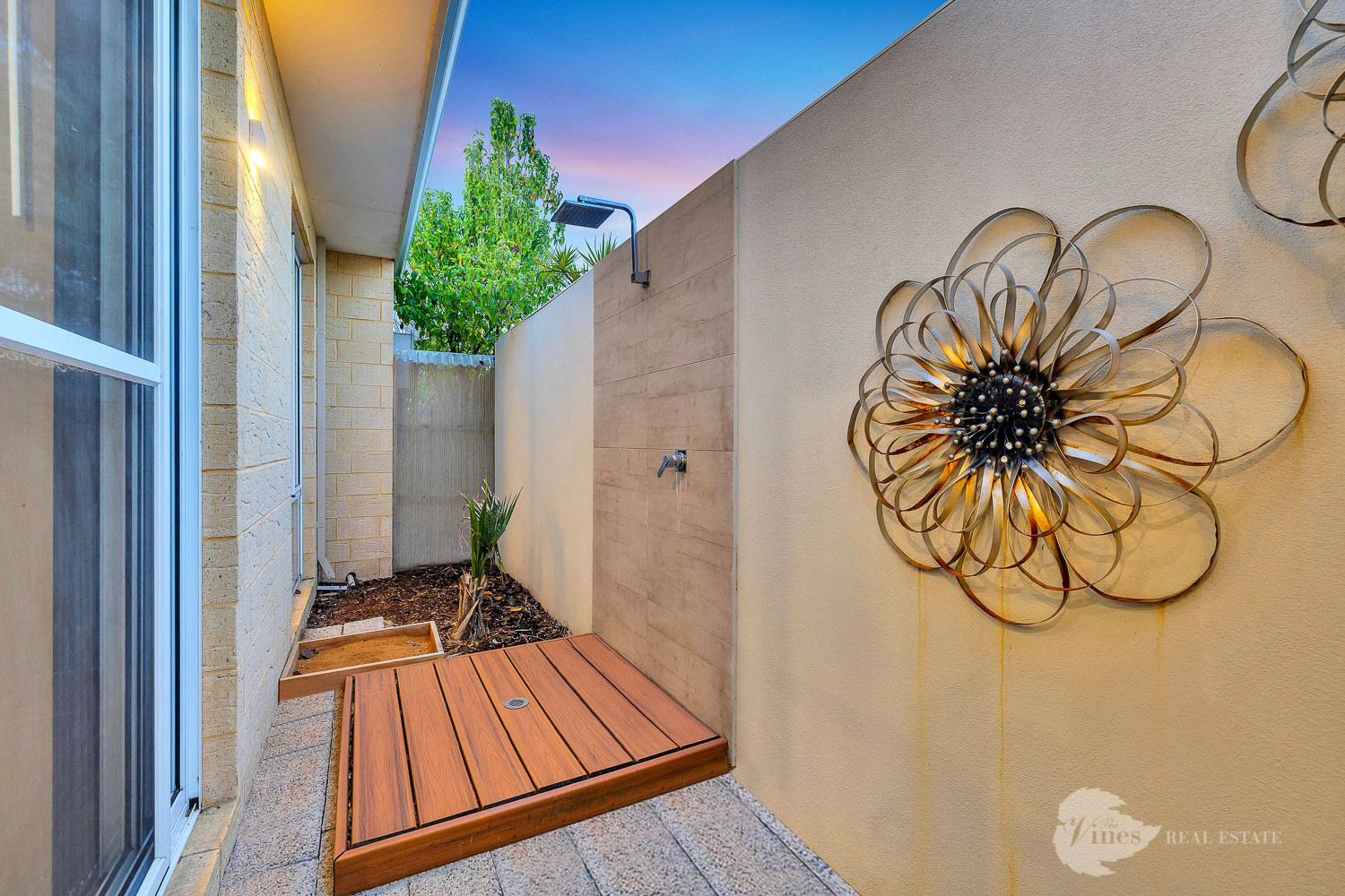 Retreat to the master suite, your private oasis, with an open-plan ensuite, separate powder room, walk-in robe, and sliding door to your very own outdoor shower and garden nook. The secondary bedrooms don’t miss out either, each with wardrobe recesses and all with vertical blinds, sheer curtains, and feature wallpaper for a pop of personality.