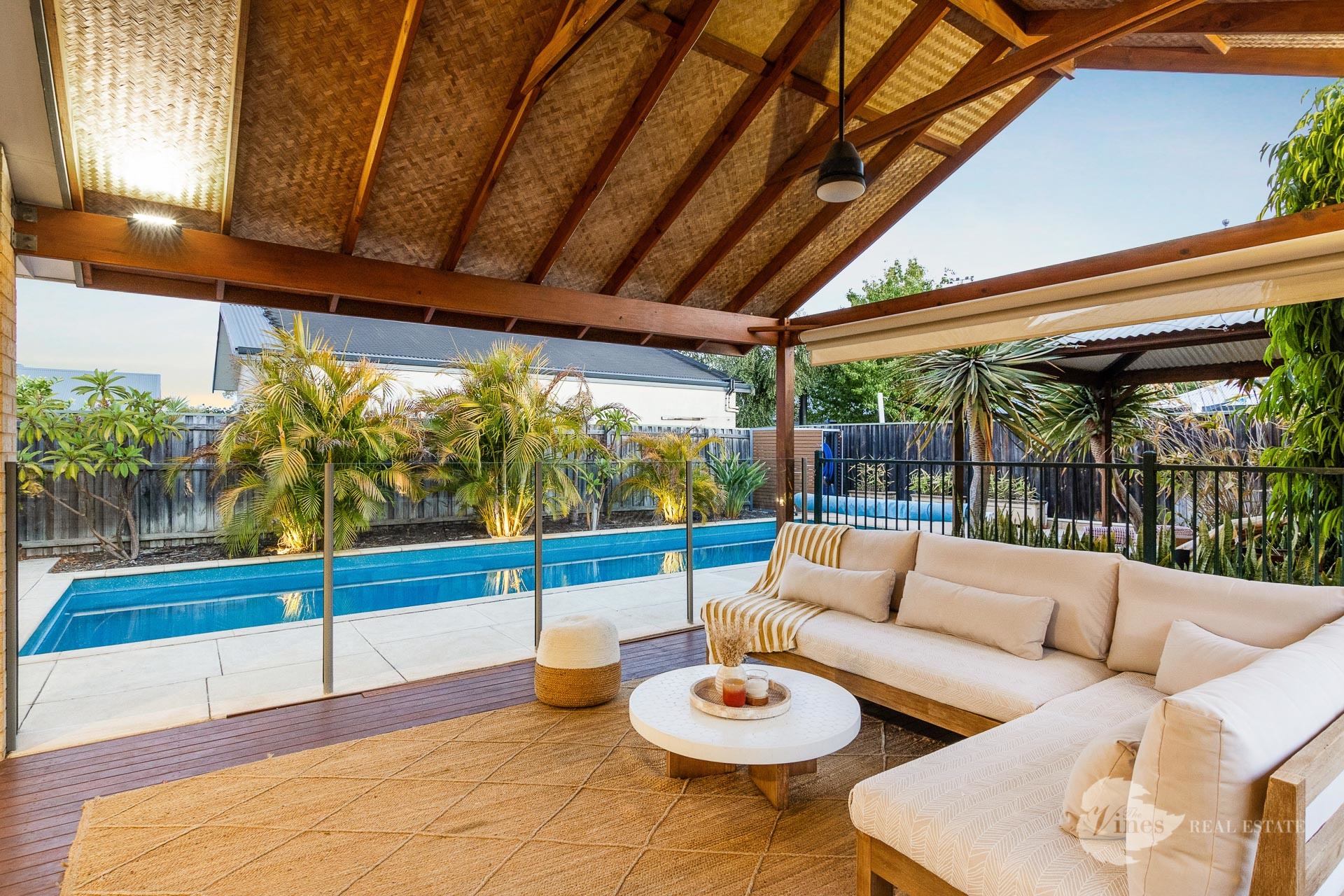 Step into the outdoor haven that crowns this residence. An ample patio under the main roof, complemented by a feature timber alfresco with exposed beams, raking ceilings, and timber decking, creates a captivating space for entertaining guests. Adjacent to this alfresco paradise lies a glorious pool, surrounded by tropical gardens that evoke an oasis ambiance. Complete with a secluded pool gazebo, it’s the perfect setting to unwind on warm summer evenings with a drink or a good book. The expansive lawn offers endless possibilities, be it for play or the addition of a shed.