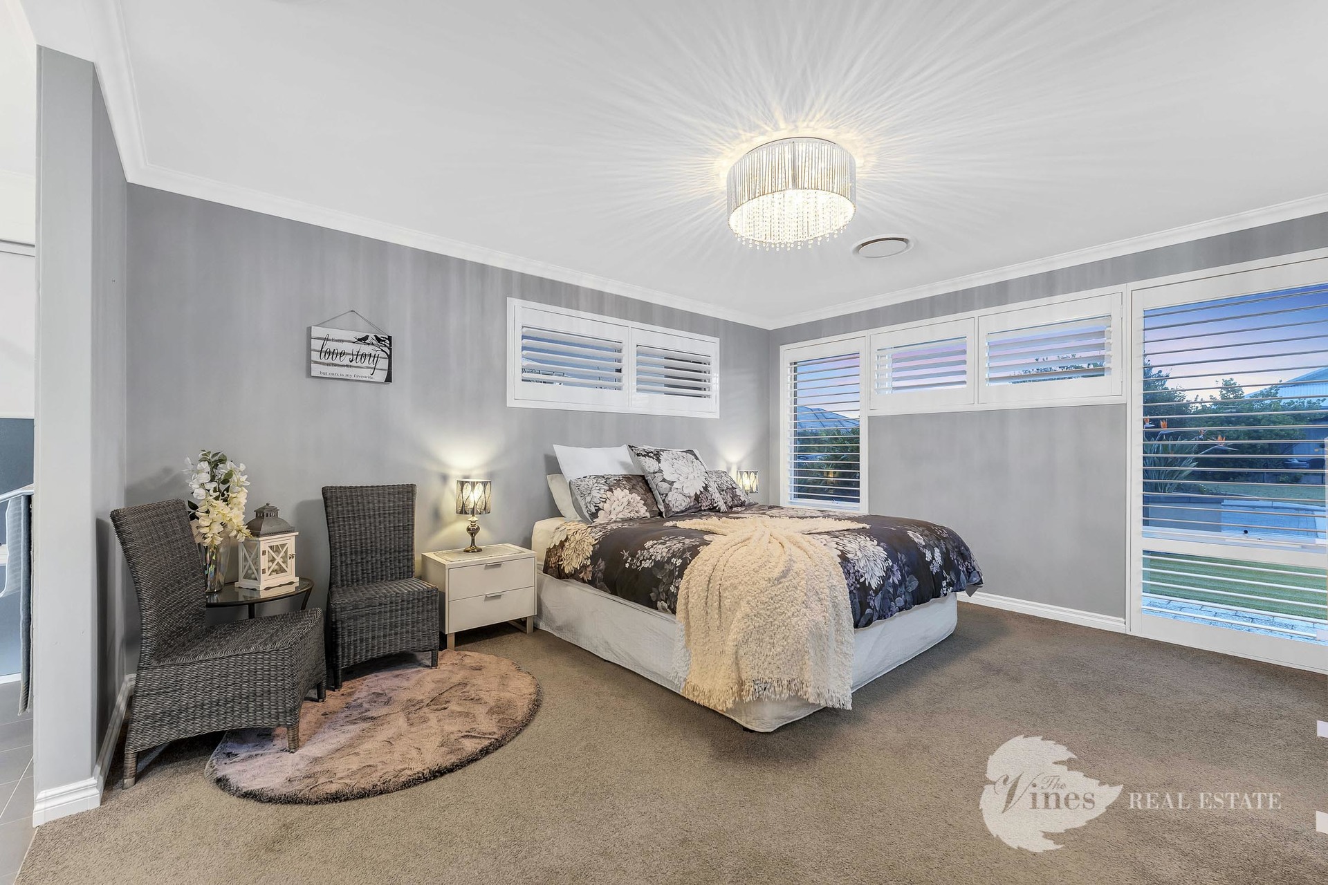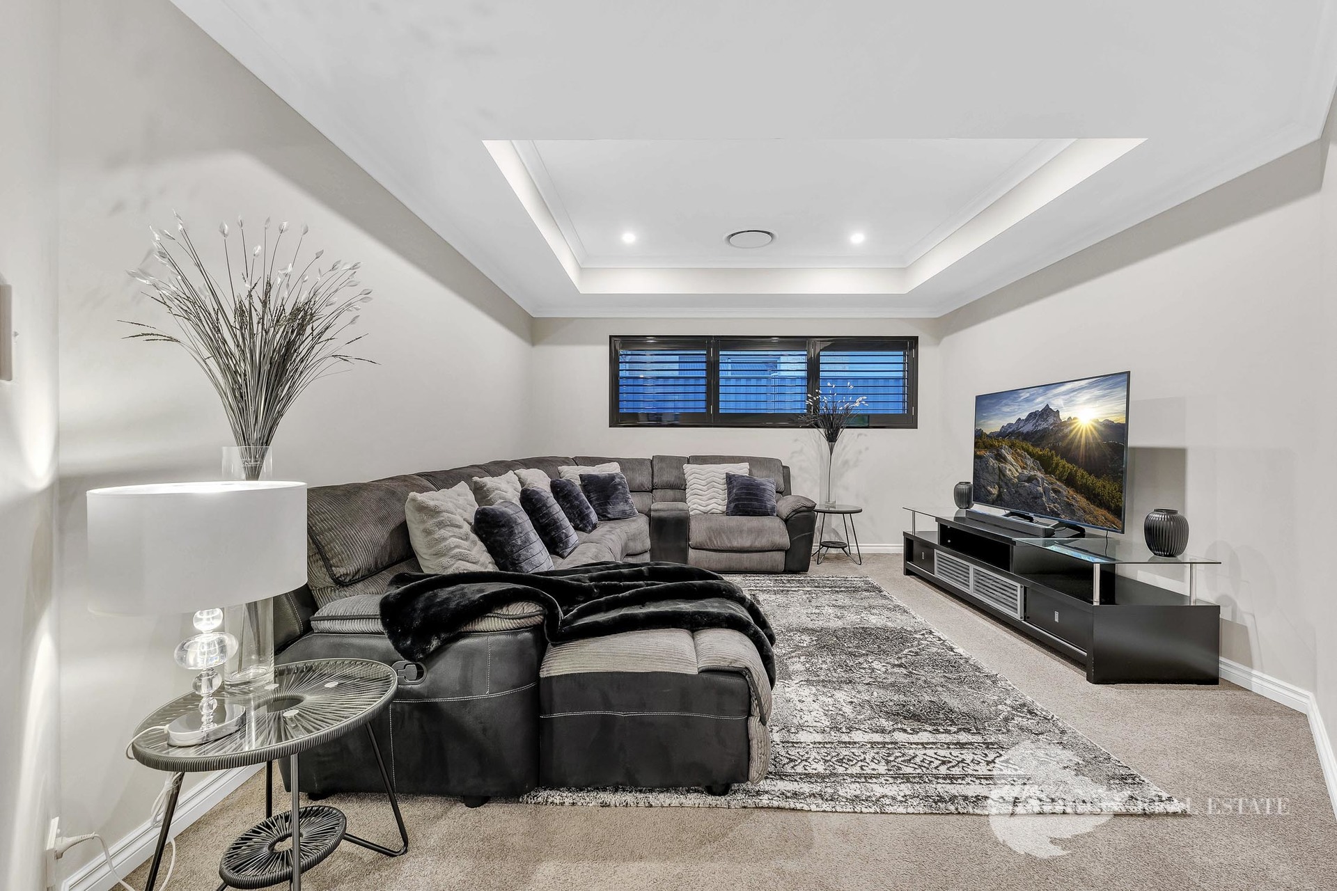 Movie nights come alive in the luxurious theatre room with recessed ceiling, while the dedicated study offers a stylish space to work from home. Throughout, you’ll find plantation shutters, high ceilings, LED downlights, reverse-cycle air conditioning, and a 6.6kW solar array, ensuring modern comfort with a touch of glamour.
