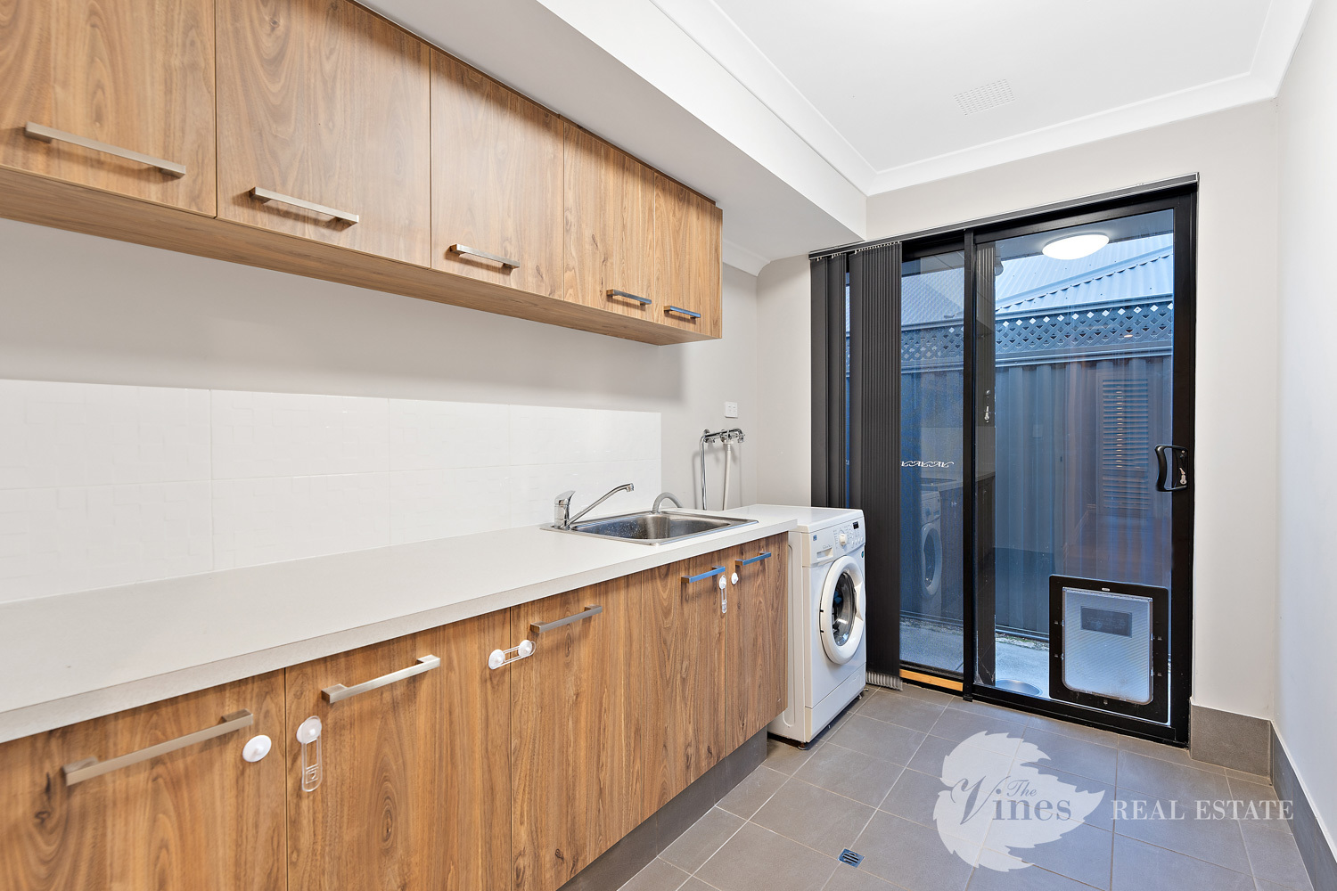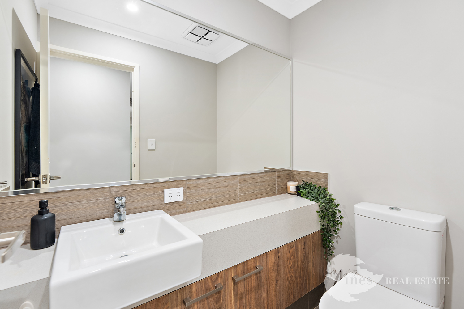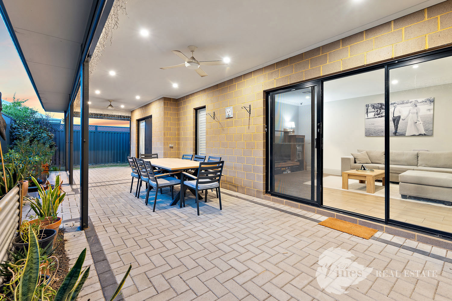 Step inside through the large entry door and you’ll be greeted with a sense of space, with raised ceilings, LED downlights and wood look tiles that flow through the main living areas, creating a warm yet contemporary atmosphere.