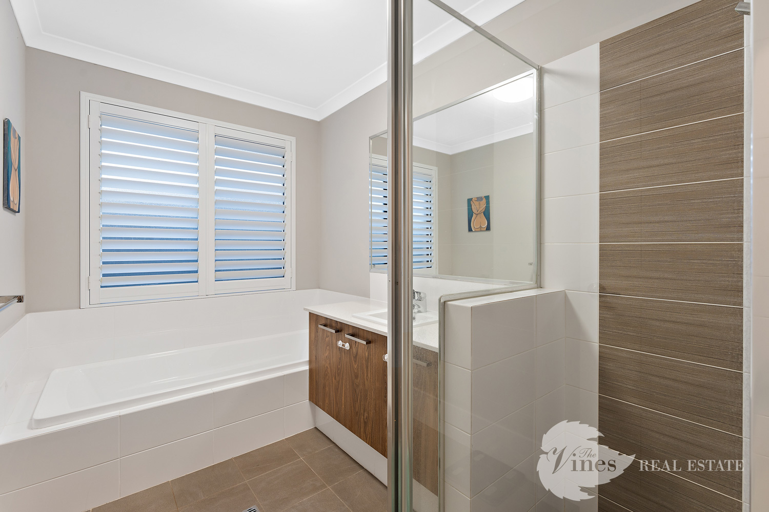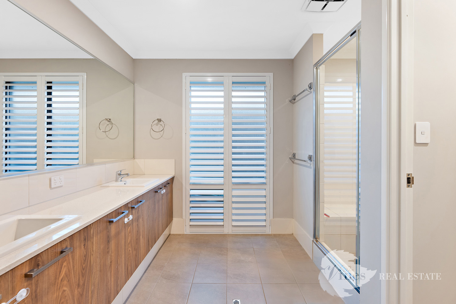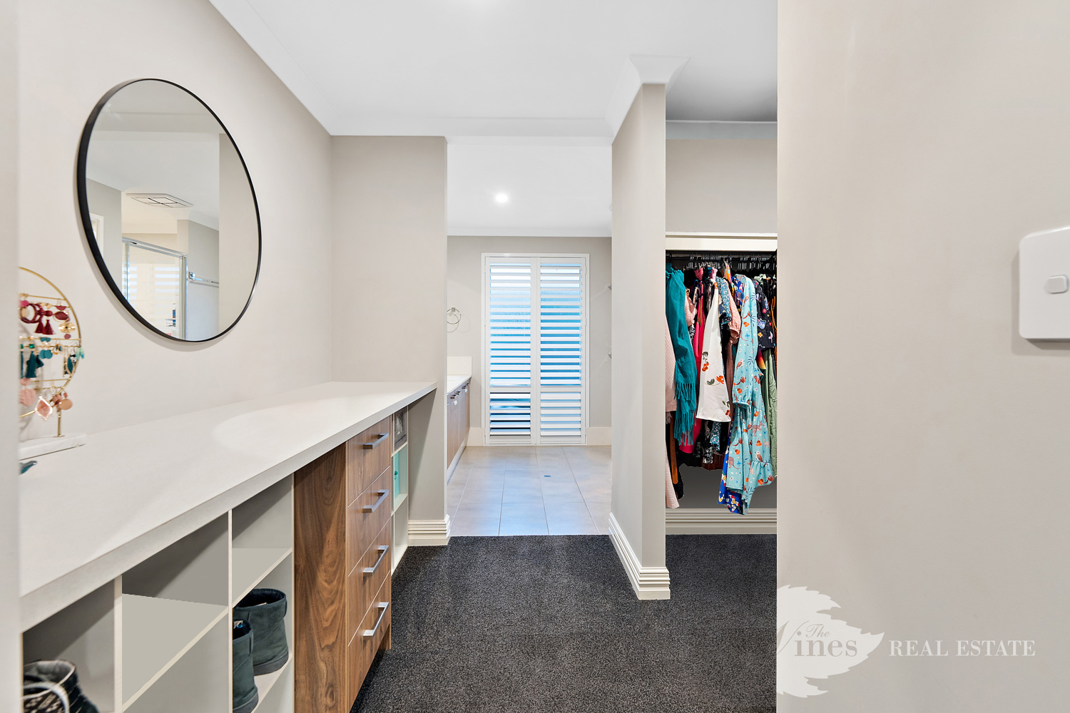 Practicality meets style in the fabulous laundry, boasting extensive bench space, built in cabinetry and overhead storage that keeps everything perfectly organised. The bathrooms and ensuite both feature plantation shutters, adding a touch of