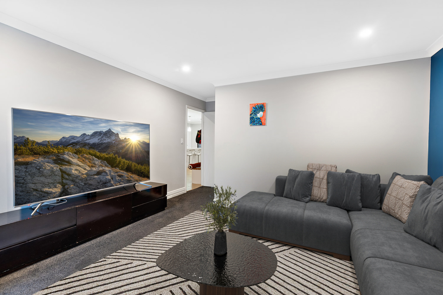The dedicated theatre room also features plush carpeting, creating a cosy atmosphere perfect for movie nights or quiet evenings in.