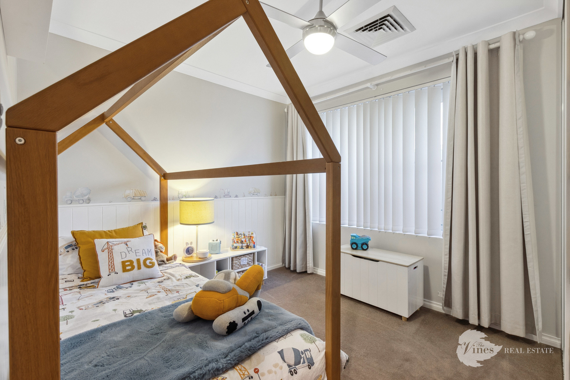 The luxurious master suite is the perfect retreat, featuring a generous walk-in robe and a beautifully designed ensuite with a double shower, dual shower heads, a spacious vanity, and sleek black accent hardware. A separate powder room adds an extra level of convenience. Each of the secondary bedrooms is equally impressive, complete with double door mirrored wardrobes and ceiling fans, ensuring year round comfort for the whole family.
