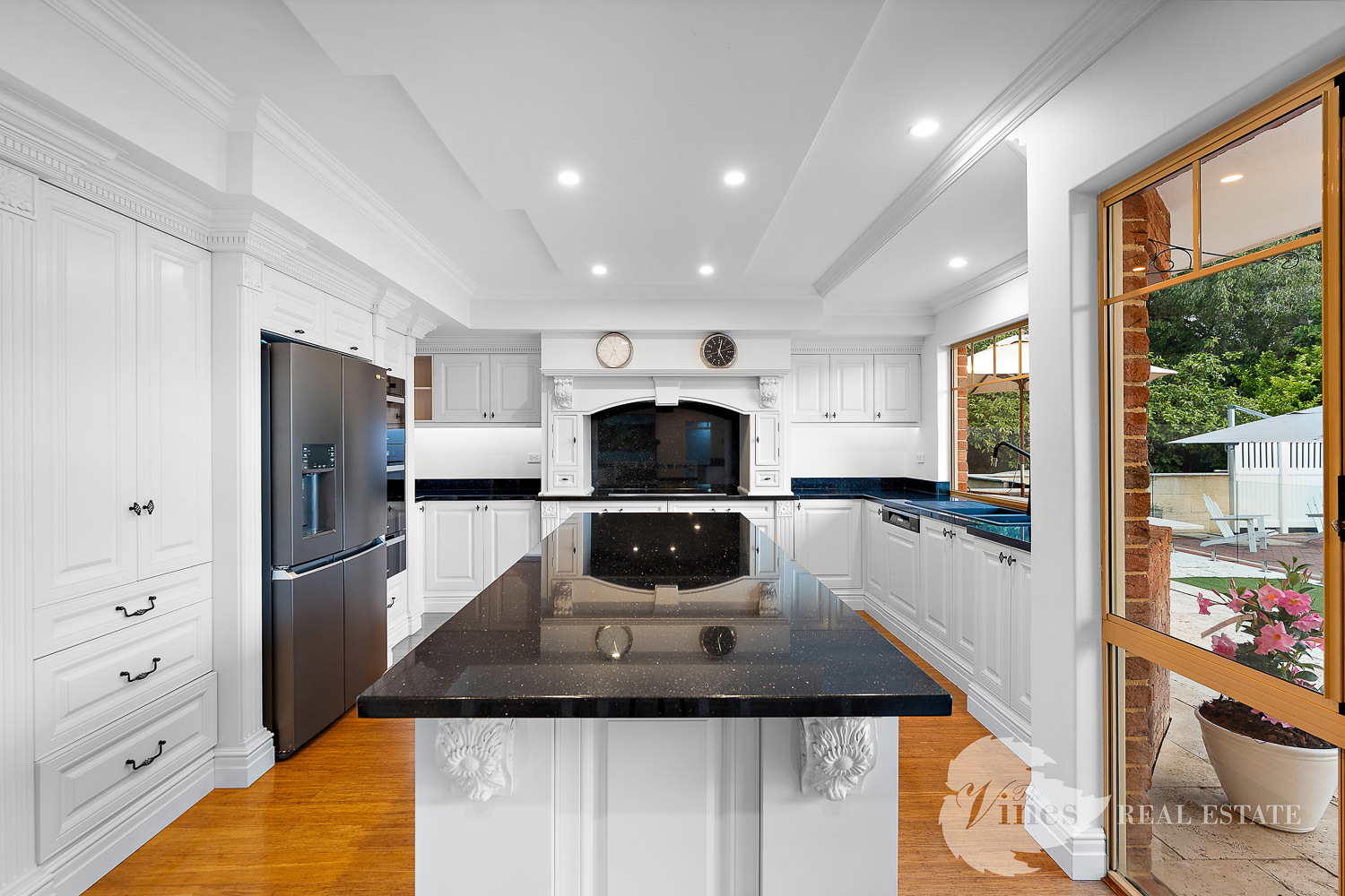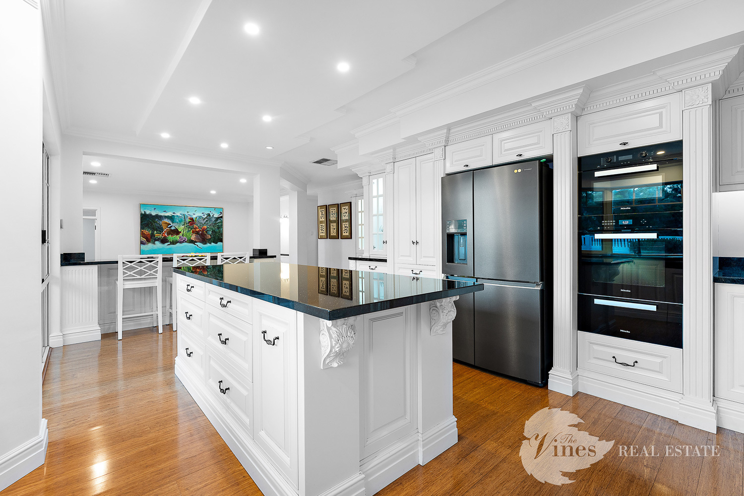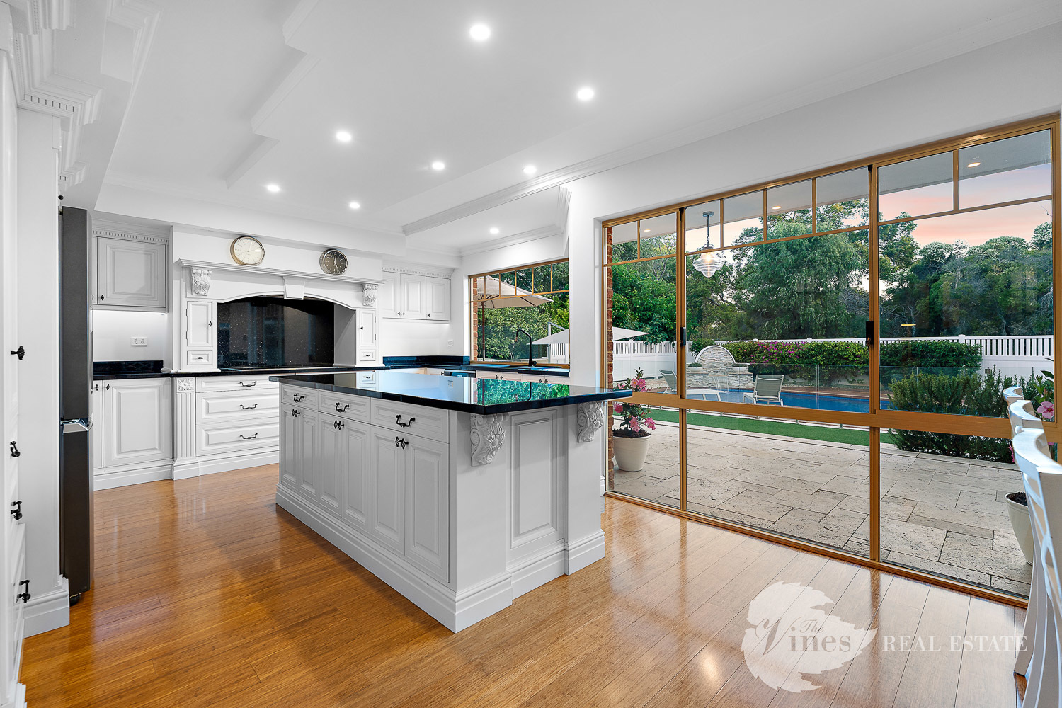 At the heart of the home, the enormous open plan living and kitchen domain is both breathtaking and highly functional, evoking the warmth and sophistication of a country estate. Bespoke, handmade cabinetry offers exceptional storage, complemented by soft-closing drawers and cupboards, feature display cabinetry, appliance storage, a large pantry and expansive granite benchtops that extend to a substantial centre island and breakfast bar. Premium Miele appliances, including oven, induction cooktop with concealed range hood, microwave and integrated dishwasher, complete this exceptional culinary space. Large windows frame picturesque garden, pool and nature views beyond.