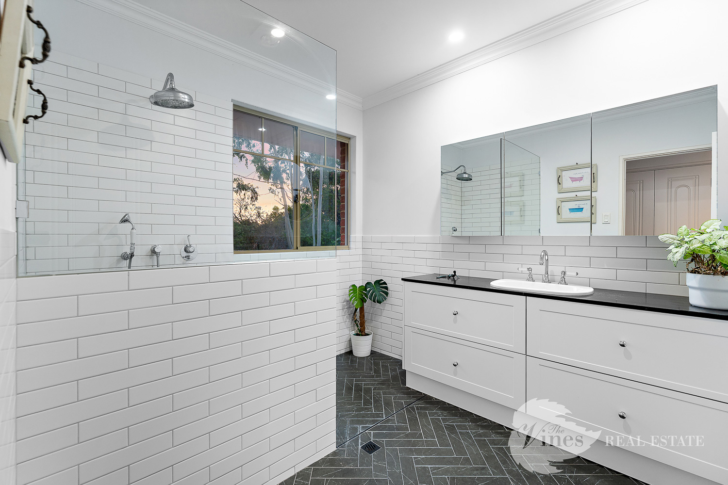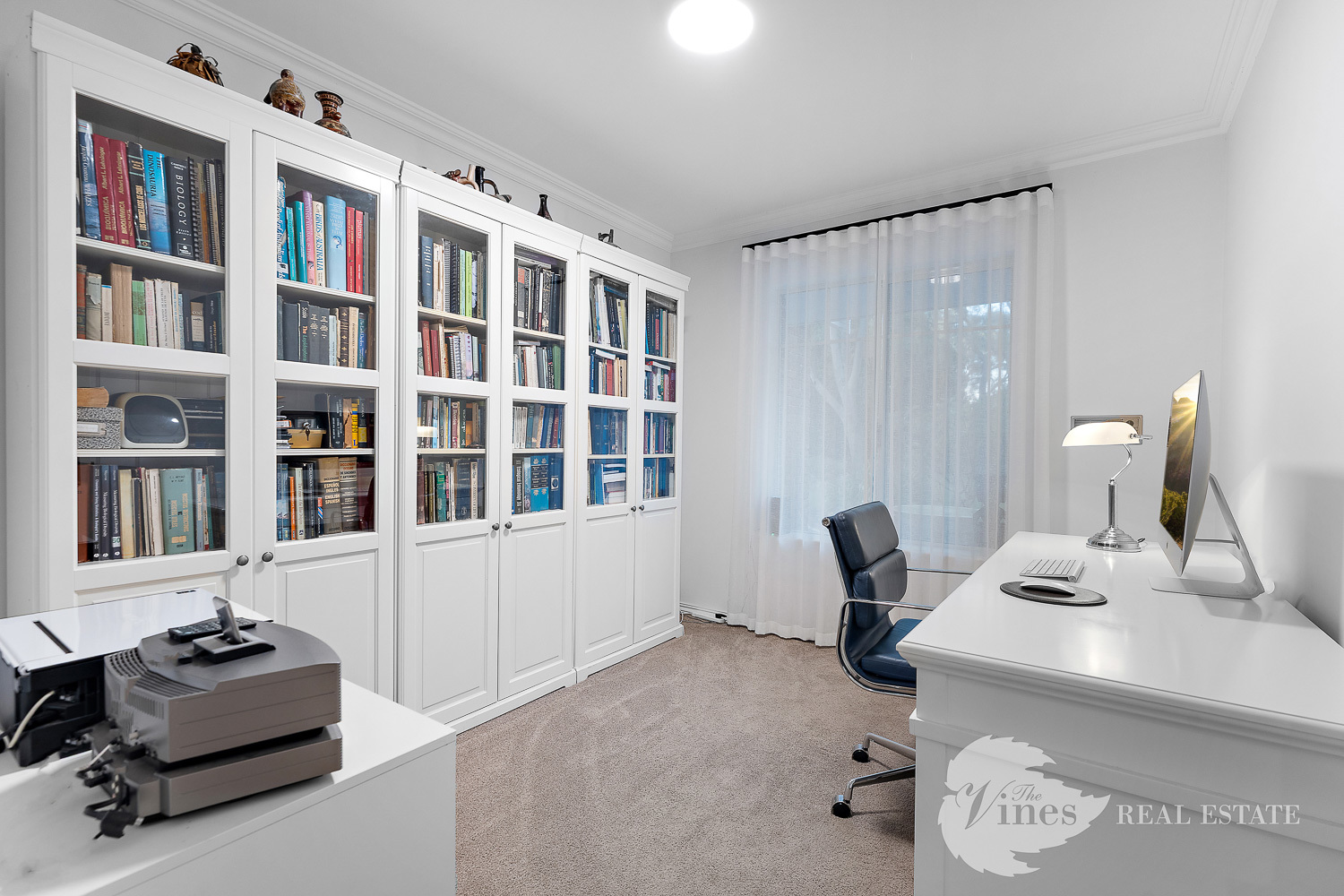 Enhanced by high ceilings, LED downlighting, elegant sheers that soften each space, a central wood fire, reverse-cycle air conditioning, a Sonos sound system, security screens, bore-fed reticulation, a bio-cycle septic system and extensive parking, this is a residence of exceptional comfort and security.