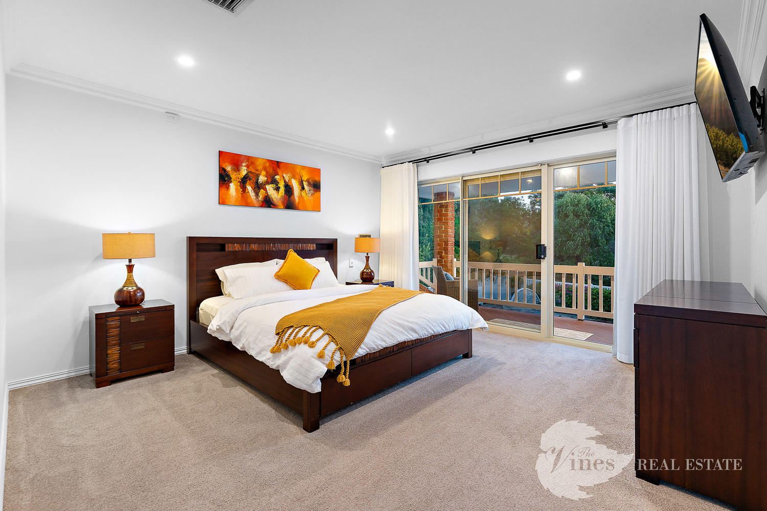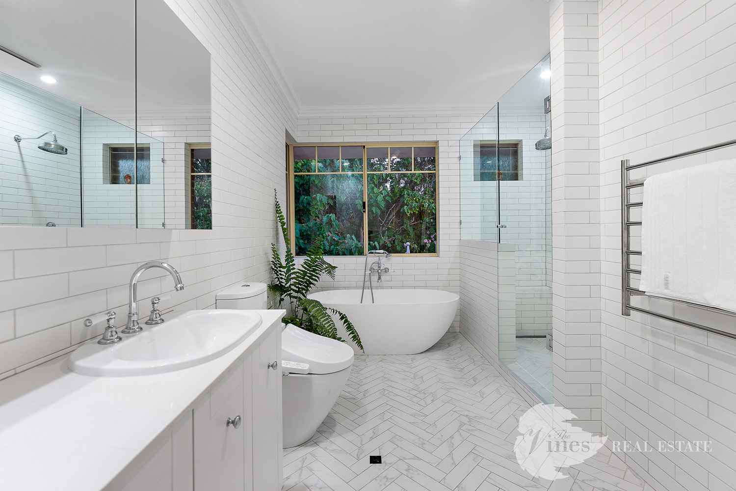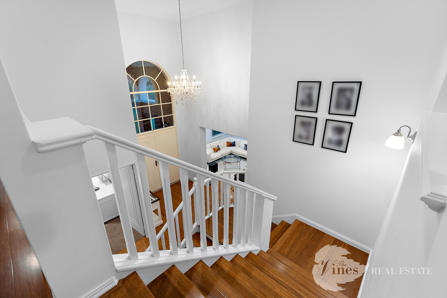 Upstairs, double doors reveal a luxurious master retreat where sliding glass doors open to a charming balcony overlooking the pool and fairway. A generous walk-in robe and stunning renovated ensuite with stone-topped vanity, large shower, freestanding bathtub and floor-to-ceiling tiling create a true sanctuary. Three additional queen-sized bedrooms with double built-in robes are serviced by a large family living area , along with a beautifully appointed bathroom featuring stone vanity, walk-in shower and a separate powder room.