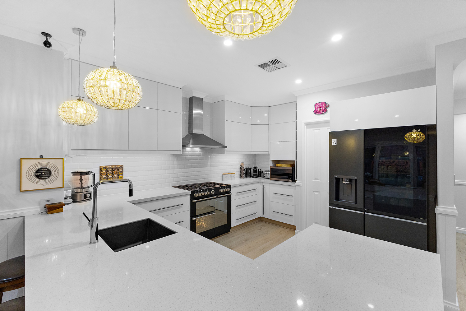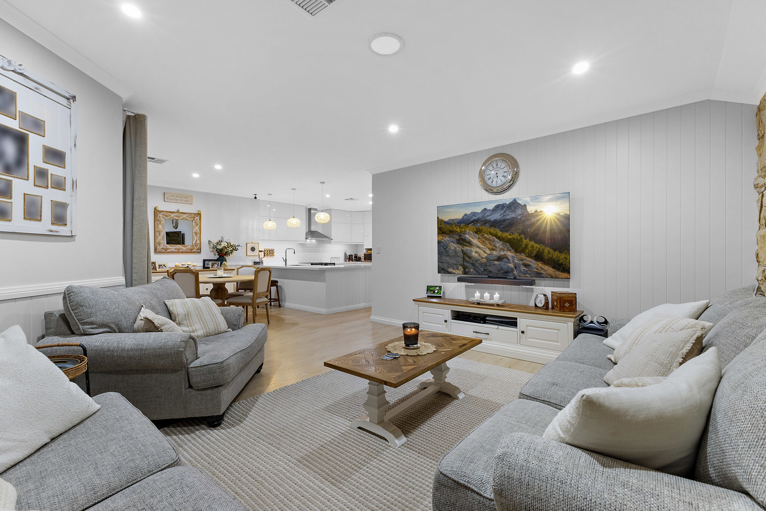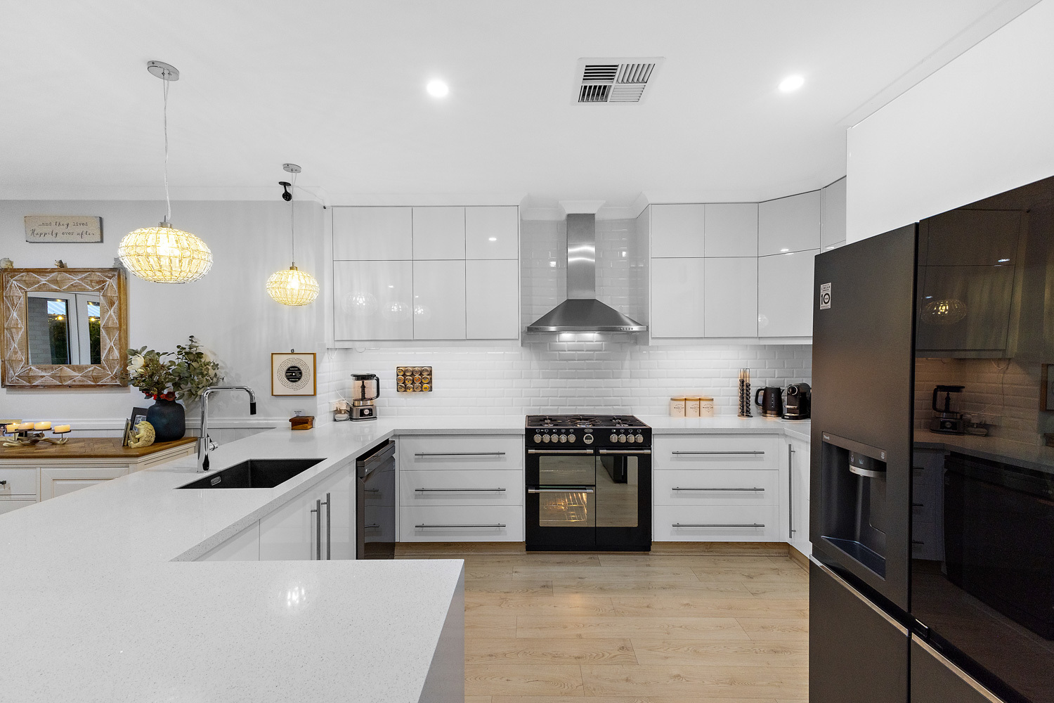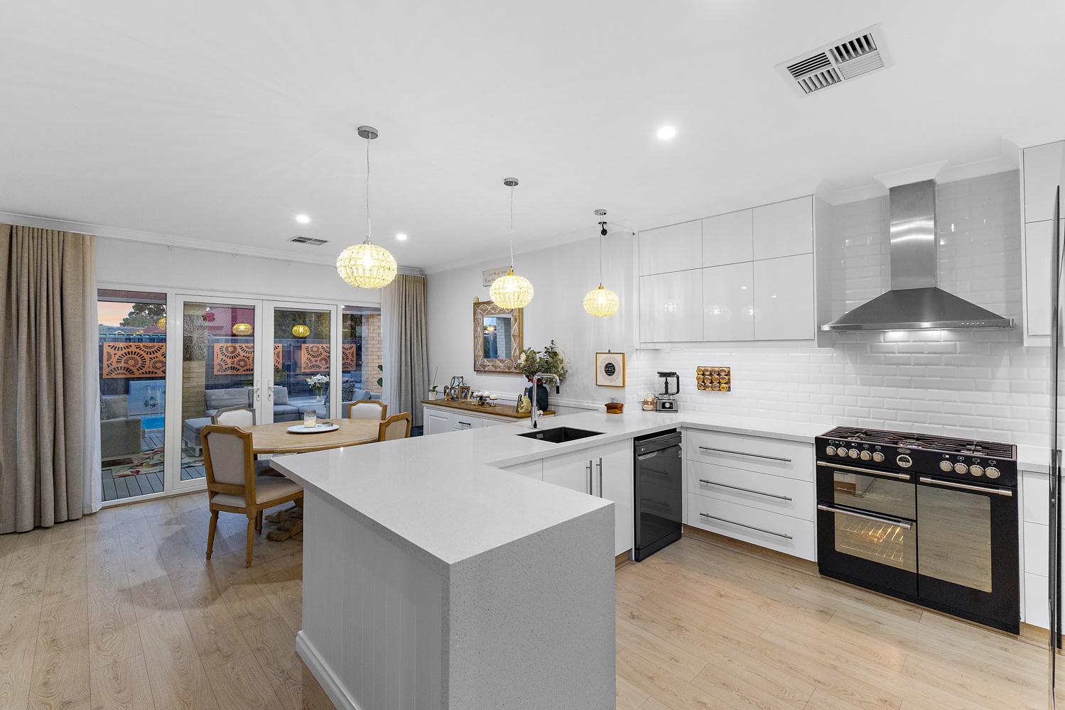 The heart of the home is an entertainer’s dream: a stunning chef’s kitchen with custom cabinetry, expansive stone benchtops, a striking freestanding oven, and an abundance of storage that’s both beautiful and functional. Whether you’re whipping up a family dinner or hosting friends, this is where memories are made.
