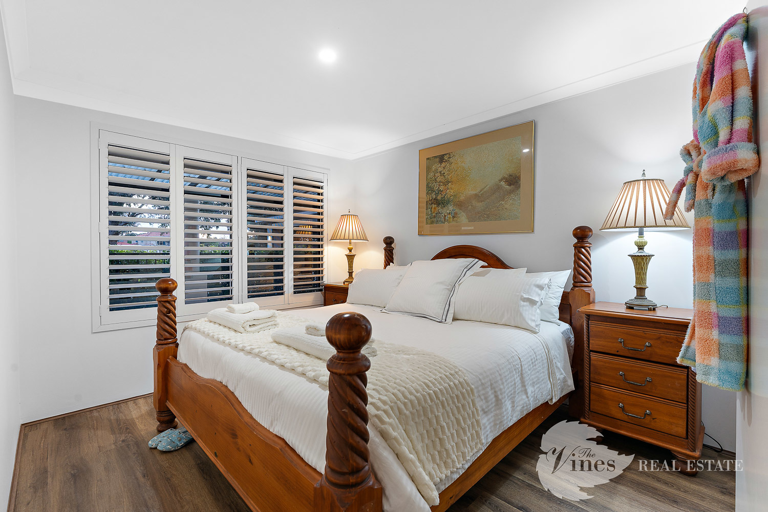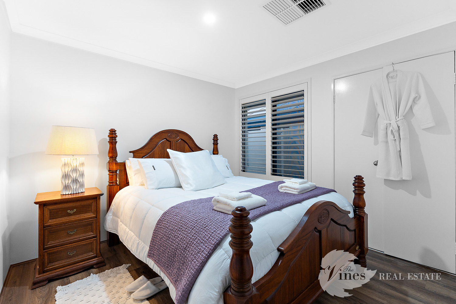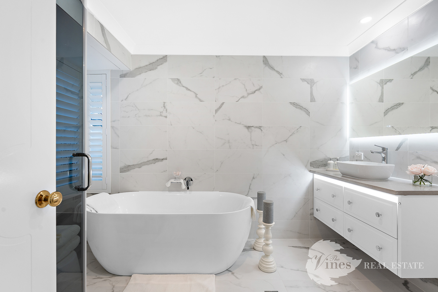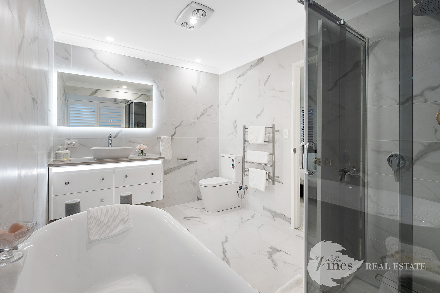 Boasting four generous bedrooms, each with king-sized beds, double-door built-in robes, and plantation shutters, every space has been designed for both style and functionality. The master suite is a private sanctuary with plush loop pile carpet, sleek skirting boards, a dreamy walk-in robe, and an indulgent ensuite featuring a freestanding bath, smoked glass shower, wall-mounted vanity, floor-to-ceiling tiles, and an adaptive lighting mirror.